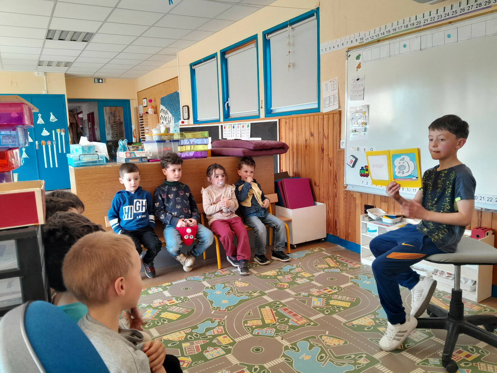 Lecture et Partage Depuis le retour des vacances de février, tous les jeudis en début d'après-midi, à tour de rôle, trois élèves de CE2 offrent une lecture dans les classes de maternelle, CP, CE1. Tout le monde apprécie ce temps partagé. Les autres CE2 pratiquent individuellement le quart d'heure lecture plaisir.