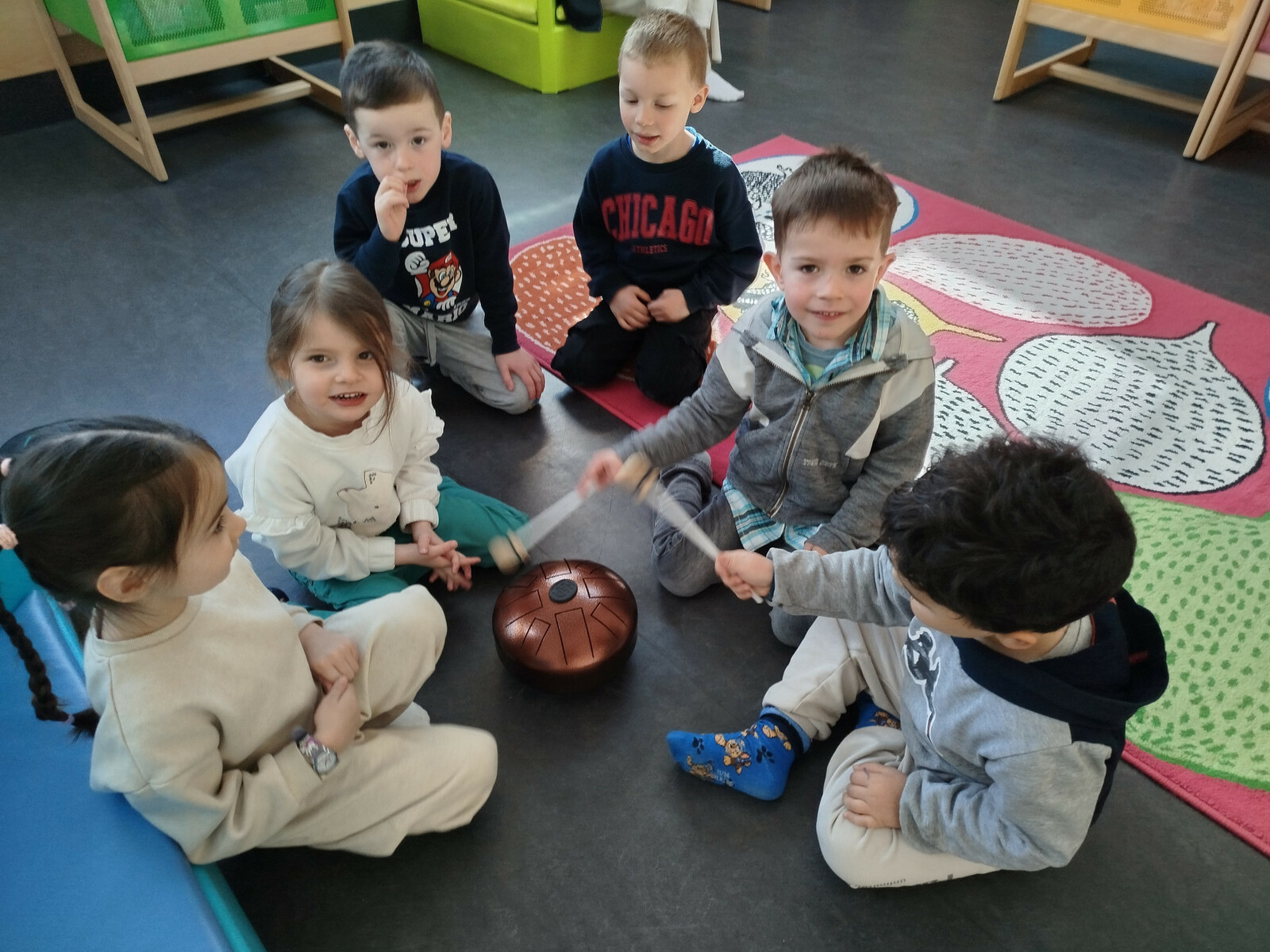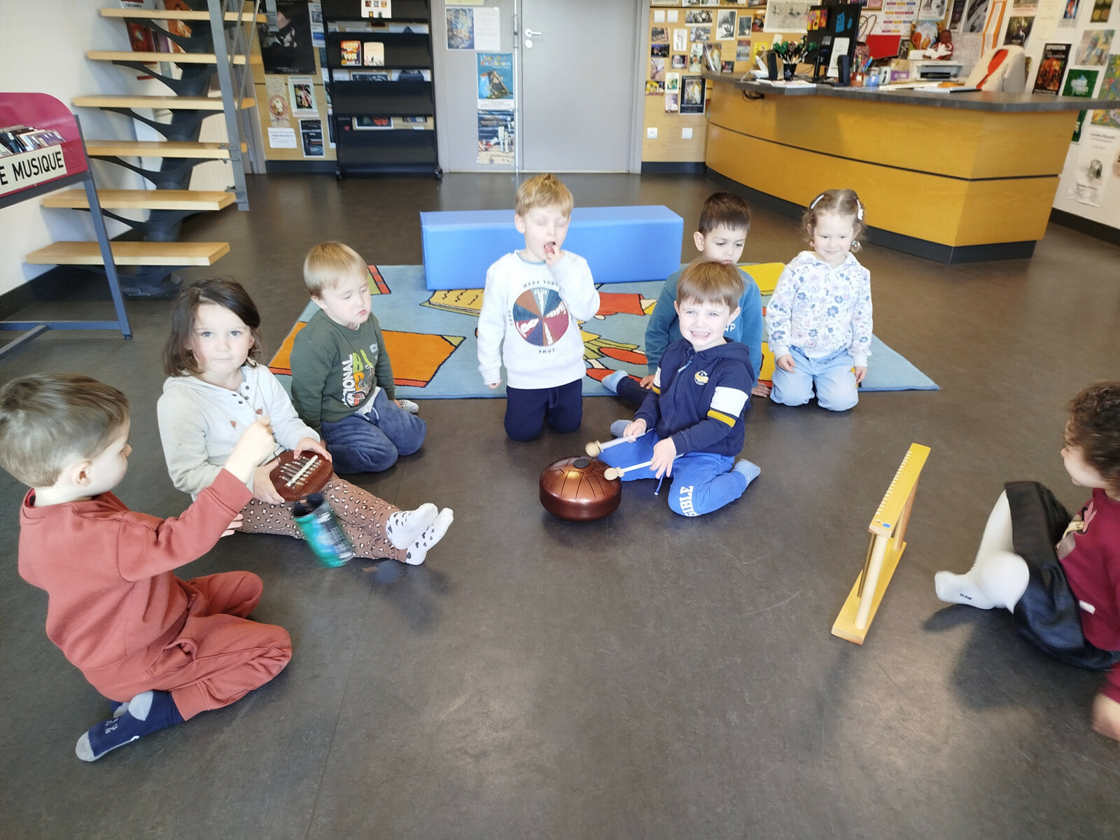 Sur cette période, les enfants de PS et MS ont aussi exploré, manipulé et découvert différents instruments aux tons vibrants et apaisants : hapi mini , carillon sur cadre, sanza, carillon zaphir, et ont pu jouer de concert.